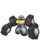 Grookey is a small, monkey-likePokémon with a green body, a brown tail, brown wedge-shaped ears, orange hands and feet, and an orange snout. Each of its hands has five fingers, while each of its feet has three toes. It has two large white eyes with black irises. A lime green mask pattern frames its eyes, and extends towards its forehead in a small bump above its snout.