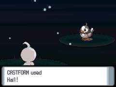 | Rainy Form Castform creates dark clouds above it, with snow falling from them. | |||