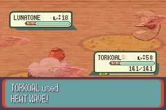 | Torkoal opens its mouth and creates a ball of orange fire in its mouth. It then releases a wind of flames at the opponent from the ball. | |||