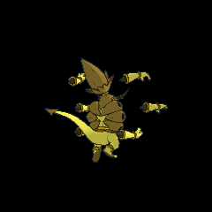 It is said to be able to seize anything it desires with its six rings and six huge arms. With its power sealed, it is transformed into a much smaller form.