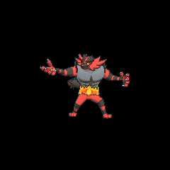Incineroar's flame belt is produced from within its body and bursts from its navel and waist as its fighting spirit rises. In addition to spewing fire from its navel, it uses ferocious kicks and punches. Incineroar is an expert on no-holds-barred battles. The flames from its navel can reach a temperature of up to 3,600 degrees Fahrenheit. This Pokémon disregards the safety of its opponents and on-lookers, sometimes striking the opposing Trainer with attacks. Incineroar usually attacks first by unleashing both ferocious punches and flinging furious kick combos and then finishing the opponent by spewing fire from its navel. It is a violent Pokémon with rough, aggressive, and egotistical behavior. It will sometimes ignore its Trainer's orders when it is not in the mood to listen. Despite this, it finds fighting unworthy opponents boring and gets motivated to fight a challenging one. Weak or injured opponents also cause them to lose the desire to fight, which others sometimes use to their advantage.
