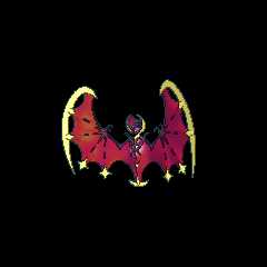 Lunala is a largePokémon resembling a skeletal, legless bat. It has a short snout, dark pink eyes with white centers, and a deep blue area on its upper head that shows a constantly changing starscape. A rigid raised hood wraps around its head in a crescent shape and drapes around its neck as well. The outside of the hood is yellow, while the inner part that curves around Lunala's head is white with deep blue streaks. Its torso resembles a ribcage with a slightly curved spike on each shoulder and three spikes extending from the bottom toward its tail. Its massive wings resemble a bat's wings with the skeleton exposed, except that Lunala's wings have a total of seven "finger bones": four running through each wing, one running along the edge to the outermost tip, and two pointing upwards that may act as claws that are more functional. The four "bones" in Lunala's wings are only visible in segments. The skin of Lunala's wings is an iridescent deep blue and a light blue light source appears to glow from behind its ribcage. A large, pale yellow crescent connects the outermost tip of each wing to the next two inner tips, and the remaining two innermost tips are adorned by yellow, four-pointed stars. The bottom of Lunala's tail is also lined by a yellow crescent with a ridge running up the middle of the tail towards the rib cage.