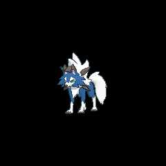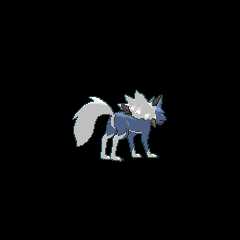 Lycanroc is a caninePokémon resembling a wolf. It has three forms: Midday Form, Midnight Form, and Dusk Form. The first two forms are influenced byRockruff being bathed inSolgaleo orLunala solar or lunar energy.[1][2] The third form is said to have been influenced by the setting sun of the evening. Lycanroc are used byhumans as guards to protect their fields fromDeerling.