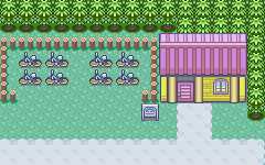 Located in the east of the city, a store known asRydel's Cycles. It is very conveniently located for the owner and customers alike, as theSeaside Cycling Road runs onRoute 110, just to the south.Rydel sellsAcro Bikes andMach Bikes. However, he will give theplayer a bike for free after he finds out that the player has come all the way fromLittleroot Town with justRunning Shoes. The player may exchange their bike with Rydel for the other bike.