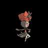 In its Pirouette Forme, it hasauburn hair that seems to be stylized in a high bun and red eyes. Its midriff and eyes match its hair. It also assumes a constant dance pose.