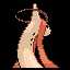 Milotic is an aquatic, serpentinePokémon with a primarily cream-colored body. It has red eyes with long, pinkish antennae above them. Additionally, there are long, hair-like fins above its eyes, which begin thin and thicken towards the tips. These eyebrows extend to almost half of Milotic's body length and will be longer on the female than the male. On top of its relatively small head is a straight spike. Running down either side of its neck are three black dots, similar to gills. Its lower body is a pattern of blue and pink, diamond-shaped scales outlined with black. The tail consists of four large, blue fins with pink ovals in their centers. Each of the tail fins overlaps the next slightly, causing it to resemble a fan. Milotic's scales are said to change color depending on the viewing angle, which has so far only been depicted inPokémon Battle Revolution.