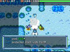 | Lapras's pupils disappear and a thick mist forms around it. | |||