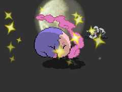 | A beam of moonlight shines down on Cresselia, causing her body to sparkle and restoring her lost health. | |||