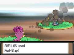 | East Sea Shellos shoots a stream of mud from its mouth at the opponent. | |||