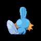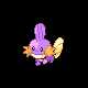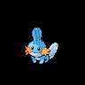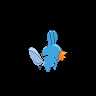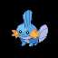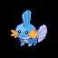 "A Mud Fish Pokémon. It has fins on its head and tail. The fin on its head acts like a radar dish to read its surroundings, and its tail fin increases its swimming speed. The gills on its cheeks allow it to move about in water. It's very strong for its size--it can even lift big boulders. It burrows into muddy watersides to sleep. Mudkip evolves into Marshtomp."
