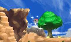 If a natural object can appear in an area, a platform will be visible behind the opponent. Natural objects will appear on this platform, with only one appearing at a time in any battle. Natural objects cannot appear whilesurfing, but they may appear whilefishing so long as the player is not surfing.