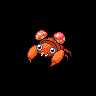 Paras is an orange,insectoidPokémon that resembles the nymph stage of acicada. Its ovoid body is segmented, and it has three pairs of legs. The foremost pair of legs is the largest and has sharp claws at the tips. There are five specks on its forehead and three teeth on either side of its mouth. It has circular eyes with large pseudopupils.