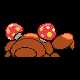 Red-and-yellow mushrooms known astochukaso grow on this Pokémon's back. The mushrooms can be removed at any time and grow from spores that are doused on this Pokémon's back at birth by the mushroom on its mother's back. Tochukaso are parasitic in nature, drawing their nutrients from the host Paras's body in order to grow and exerting some command over the Pokémon's actions. For example, Paras drains nutrients from tree roots due to commands from the mushrooms. The mushrooms are also popular among collectors and have medicinal uses, usually involving extended life. Prior toGeneration III,Spore was itssignature move.