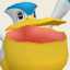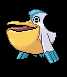 Pelipper is apelican-likePokémon whose head and bill make up the majority of its body. It has white feathers with a short, blue crest on top of its head. There are three blue digits on each of its wide wings, and it has blue feet with three webbed digits. Each eye is made of two black semicircles with a horizontal white line between them. Its large yellow bill appears to extend along its underside.