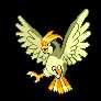 It has outstanding vision. However high it flies, it is able to distinguish the movements of its prey.(Pokémon Red, Silver, or Crystal inserted) It immobilizes its prey using well-developed claws, then it carries the prey more than 60 miles to its nest.(Pokémon Blue, Gold, or Yellow inserted)