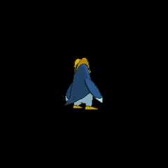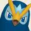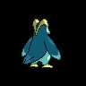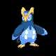 Biology Prinplup is a blue,penguin -likePokémon . It is mostly dark blue with light blue facial markings, wing tips, and lower body. Its eyes are blue and it has a short yellow beak with a small point above it. Two large, yellow ridges extend from its beak over the back of its head and meet just above the nape of its neck. On its body are four large, white spots that resemble buttons. Instead of arms, it has long, sturdy, flipper-like wings that are capable of knocking over and snapping trees. It has short legs with yellow, three-toed feet.