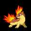 Be careful if it turns its back during battle. It means that it will attack with the fire on its back.(Pokémon Red, Silver, or Crystal inserted) ThisPokémon is fully covered by nonflammable fur. It can withstand any kind of fire attack.(Pokémon Blue, Gold, or Yellow inserted)