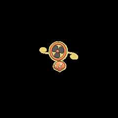 Rotom turns into Fan Rotom by taking over anelectric fan. Its appendages turn into air curls, and its eyes and aura become yellow. It can stir up powerful gusts of wind to blow away opponents, which it applies to its love for pranks by blowing away everything around it, such as important documents it finds. The electric fan that Fan Rotom inhabits was invented by a boy, and was the first Rotom-related appliance to be developed, leading to the creation of many other appliances like it.