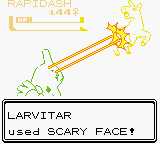 | Larvitar stares at the opponent in a scary-looking way. | |||