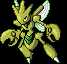 It swings its eye patterned pincers up to scare its foes. This makes it look like it has three heads.(Pokémon Red, Silver, or Crystal inserted) Its wings are not used for flying. They are flapped at high speed to adjust its body temperature.(Pokémon Blue, Gold, or Yellow inserted)