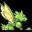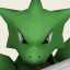 Scyther is a bipedal,insectoidPokémon. Its body is primarily green and has a thin, cream-colored section between its head, thorax, and abdomen. Female Scyther have larger abdomens than male Scyther. Its reptilian head has two narrow, triangular eyes and three blunt horns extending from its forehead. Its arms end in large, white scythes, which it uses for both hunting and fighting. Two pairs of cream-colored wings extend from its back. While these wings do allow Scyther to fly, it rarely does so. Scyther's thighs have large, upward-pointing spikes. Its feet are tall, rounded, and conical, almost extending to its thighs; each foot ends in three small, white claws on its front side.