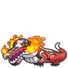 Skeledirge has a meddlesome but caring personality. Its singing is gentle but powerful and full of vitality, capable of soothing the souls of all who hears it. Opponents hearing its singing will feel warm and fulfilled inside, losing their will to battle. There is an orange fiery bird resting on top of Skeledirge's head, which is a separate, independent entity from the Pokémon. This bird is spherical, with a yellow face, white eyes, a short crest and tail, and a singular tiny pointed "foot" it balances itself on. The bird was born when the egg-shaped fireball Skeledirge had as aCrocalor gained a soul, which also gave it itsGhosttype.[1] It can sometimes be seen pecking at Skeledirge's jaws, supposedly cleaning its teeth. Skeledirge burns its enemies by unleashing flames that exceed 5,400 °F (3,000 °C). When it sings, its bird transforms into a microphone, growing its "foot" longer until it reaches the ground.The bird is then powered up by Skeledirge's singing, growing larger and flying towards its target. As shown inPokémon Sleep, Skeledirge and its pre-Evolutions are known to sometimes sleep with an eye open. The fiery bird on Skeledirge's head occasionally moves about and even plays pranks on it when its sleep is shallow. An excellent caretaker, it never gets angry no matter what's done to it and continues sleeping.[2]