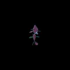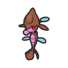 Skrelp is a brown aquaticPokémon that resembles acommon sea dragon. It has a purple face and neck, red eyes rimmed with black, a tubular, upturned snout, a leaf-likepectoral fin on either side of its head, and a large, roundish lump on top of its head. A light blue, round growth is attached to the back of its head by a thin brown stem. Its back has a slight hunch with a blunt spike. On either side of its body is a rounded, light blue fin and it has a striated, purple belly. Its tail is composed of three leaf-like fins.