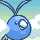 Swablu is an avianPokémon with a round, blue body. Since it has no discernible neck, its body appears to be all head. There are two long feathers on top of its head, and it has a short, rounded white beak and beady, black eyes. Its wings are fluffy and white, resembling cotton or clouds and are made of air. The wings have a light and fluffy feel. It has tiny, white feet and two pointed tail feathers.