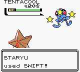 In the Western versions of the Generation I handheld games, as well as inPokémon Stadium, Swift inflicts damage and bypassesaccuracy checks to always hit. It can hit a Pokémon even during thesemi-invulnerable turn of a move such asDig orFly.