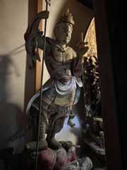 観龍寺には、千手観音の眷属、二十八部衆もおられる。二十八部衆といえば、京都の三十三間堂の鎌倉時代の等身大のお像をご存知の方も多いだろう。観龍寺の二十八部衆は40〜50センチほどの小像で、28体のうち25体が現存する。さらに、二十八部衆と合わせてまつられる風神雷神のうち、雷神像も残る。鎌倉時代のものがほとんどで、室町や江戸時代のものある。様々な時代のお像が混在するのは、当初の像が壊れたり失われるたびに補強されてきたためだろうか。堂内のガラスケースの中に安置されており、目を凝らして拝観した。観龍寺は田村麻呂ゆかりのお寺なので、京都の清水寺を模して二十八部衆が造立された可能性を妄想する(京都清水寺の二十八部衆についてはこちら)。