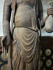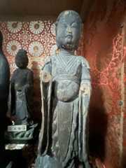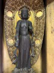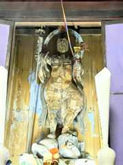 須弥壇の正面右に大きなお像が立っておられる。ご本尊とはうってかわって、こちらは平安時代の地方仏の面目躍如といった感じ。おそるべし、観龍寺! 像高174.9センチ。桧材の一木造り。素地で彫眼。県宝