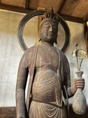 像高98.5センチ。檜の一木造り。県宝。不動明王立像と同じく、平成12年に盗まれ、所在不明となっている。写真で拝見する限り、仏師が木の中に観音様の姿をみて彫り出したかのようなお姿だ。とても魅力的なお像である。
