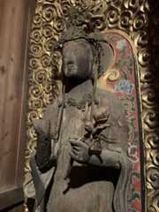 筑波山知足院中禅寺で祀られていたとされる十一面観音立像を拝ませていただいた。住職のお話によると、徳川第五代将軍綱吉の命により知足院の住職をしていた隆光が江戸の護国寺に移る際、江戸に持っていき、さらに、隆光が隠居する際に、弟子の賢光(この寺の住職)に渡したと考えられているのだとか。