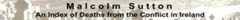 Return to Tabulation Index Page Footnotes - missing.Religion: from Catholic community in NI; from Protestant community in NI; not from Northern Ireland killed in Northern Ireland; killed in Britain; killed in Republic of Ireland. killed elsewhere in Europe;Religion Summary: from Catholic community in NI; from Protestant community in NI; not from Northern Ireland. status of person killed. Organisation responsible for the killing.Summary of Status & Organsiation: - British Security Forces; - Republican Paramilitary Groups; - Loyalist Paramilitary Groups; - Irish Security Forces; - organisation not known.Status & Organisation: Civilian; Civilian Political Activist; British Army; British Army Territorial Army; British Police; Prison Officer; ex-Prison Officer; Royal Air Force; Royal Irish Regiment; Royal Navy; Royal Ulster Constabulary; ex-Royal Ulster Constabulary; Ulster Defence Regiment; ex-Ulster Defence Regiment; Irish National Liberation Army; ex-Irish National Liberation Army; Irish People's Liberation Organisation; Irish People's Liberation Organisation Belfast Brigade; Irish Republican Army; ex-Irish Republican Army; Irish Republican Army Youth Section; non-specific Republican group; Official Irish Republican Army; ex-Official Irish Republican Army; Official Irish Republican Army Youth Section; People's Liberation Army; real Irish Republican Army; Saor Eire; Loyalist Volunteer Force; non-specific Loyalist group; Red Hand Commando; Ulster Defence Association; ex-Ulster Defence Association; Ulster Volunteer Force; ex-Ulster Volunteer Force; Garda Síochána; Irish Army; organisation not known. See also:Note on the photographs. [menu] [book] [structure] [year] [name] [search] [tables] [crosstabs] [select/crosstabs] ![]() |
