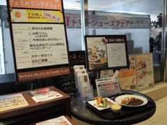 この日のフェアは下川(しもかわ)町(北海道上川郡)のトマト。エントランス横ではトマトジュース販売、ダイニングでは特産品のトマトを使ったランチが提供されています。