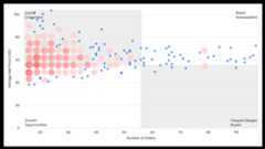 To zoom in and view all the individual data points that are included within a cluster, select the circle for that cluster in the visualization. When you select a cluster, the scatterplot visualization zooms in to show the individual data points that comprise that cluster.