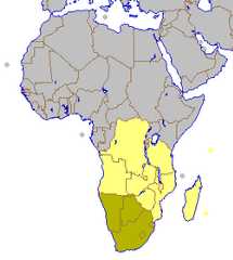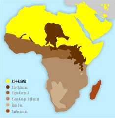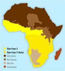 | Map showing the approximate distribution of Bantu (dull yellow) vs. otherNiger-Congo languages languages and peoples (bright yellow). |