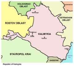 | | Short name | Kalmykia | | Official name | Republic of Kalmykia | | Status | Republic of► Russia | | Capital | Элст[3] (Elista) Элиста[4] | | Population | 272,647 inhabitants | | Area | 76,100 km² | | Major languages | Kalmykian, Russian | | Major religions | Buddhism, Russian Orthodoxy | | More information | Kalmykia,Geography of Kalmykia,History of Kalmykia andPolitics of Kalmykia | | More images | Kalmykia -Kalmykia (Category). |