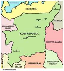 Му выв ин: Куйлö Роч тшöтшкöмас асыв-войвылын. Видзö öтувъя суйöр Кардор, Киров, Перым, Свердловск да Тюмень обласьтъяскöд. Сыктывкарсянь Мöскуаöдз 1515 км. | | English | Komi - Komi Republic The Komi Republic is a republic and a federal subject of► Russia, to the west of the Ural mountains, in the north-east of the East European Plain. |