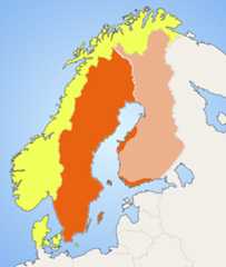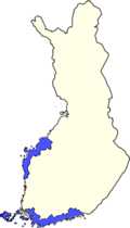| Svenskfinland, in red. In orange: other Swedish speaking areas |
