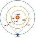 English: Elongation is an astronomical term that refers to the angle between the Sun and a planet, as viewed from Earth.