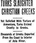 <nowiki>genocidio griego; Genosid Yunani; Griechenverfolgungen im Osmanischen Reich 1914–1923; Генацыд грэкаў; د یونانيانو نسل وژنه; Понтийски гръцки геноцид; Pontyske Grykske genoside; یونانی نسل کشی; یونانی نسل کشی; Fandripahana ny Grika pôntika; Grekiska folkmordet; геноцид понтійських греків; Völkermord an de Pontosgrieche; 그리스인 집단학살; Genocido de la grekoj; Геноцид на Грци; கிரேக்க இனப்படுகொலை; genocidio dei greci; Griekse Genocide; génocide grec; Rum Kırımı; Grčki genocid; نسلکشی یونانیان; Gjenocidi i grekëve të Pontit; Genocidi grec; геноцид греков; Պոնտոսի հույների ցեղասպանություն; 希臘種族滅絕; Genocídio grego; Griekse genocide; רצח העם היווני-פונטי; Griekse volksmoord; Геноцид над Грцима; Grek genoțidi; Genosida Yunani; Genotzìdiu de is gregos; Diệt chủng Hy Lạp; การฆ่าล้างเผ่าพันธุ์ชาวกรีก; Ludobójstwo Greków; genocidul grecilor; Pont Yunan soyqırımı; Kreikkalaisten kansanmurha; Řecká genocida; Cênosidê Ruman; جینۆسایدی یۆنانییەکان; Greek genocide; الإبادة الجماعية لليونانيين; Γενοκτονία των Ελλήνων της Μικράς Ασίας και της Ανατολικής Θράκης; ギリシャ人虐殺; Pontus Rumlarının tarihsel anayurtlarından sistematik olarak sürgün edilmesi; pemusnahan sistematis penduduk Yunani Kristen dari tanah airnya; exterminio sistemático de la población griega cristiana de su patria histórica; 一戰期間的系統性種族清洗; uciderea sistematică a populației grecești otomane creștine, desfășurată în Anatolia în perioada 1914-1922; قڕکردنی سیستماتیکی دانیشتوانی مەسیحی یۆنانی لە زێدی مێژوویی خۆیان (١٩١٣–١٩٢٢); 1913–1922 genocide of Greek Christians in the Ottoman Empire; الإبادة المنهجية للسكان المسيحيين اليونانيين من وطنهم التاريخي; σκόπιμη και συστηματική εξόντωση των ελληνικών χριστιανικών πληθυσμών από πατρογονικές εστίες στην σημερινή Τουρκία; etninen puhdistus Turkissa; genocidul grecilor pontici; ギリシャ人大虐殺; Génocide Grec; Massacres des Grecs; Génocide des Grecs; Pontiska folkmordet; Pontisk Grekiska folkmordet; Pontisk-grekiska folkmordet; Genocidio dei greci; Γενοκτονία των Μικρασιατών; Պոնտոսի հույների ցեղասպանությունը; Holocausto griego; genocidio griego del Ponto; Vertreibung der Griechen Kleinasiens; Verfolgung orthodoxer Griechen im Osmanischen Reich 1914-1923; Griechenverfolgungen im Osmanischen Reich 1914-1923; Griechenverfolgungen im Osmanischen Reich; Verfolgung orthodoxer Griechen im Osmanischen Reich 1914–1923; Kleinasiatische Katastrophe; Yunan soykırımı; Yunan kırımı; Rum Soykırımı; Pontus Katliamı; Rum katliamları; Pontus Soykırımı; Pontic genocide; نسل کشی یونانیان; نسل کشی یونانی ها; 希臘人種族大屠殺; مجازر اليونان البنطيين</nowiki>