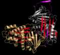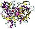 <nowiki>proteína; prótín; پرٛوٹیٖن; protein; پروټين; protein; لحمیات; bielkovina; білок; belok; 蛋白质; Protein; proteinlar; Protein; bílkovina; protein; प्रोटीन; ပရိုတေင်း; protéine; bjelančevina; ашовт; प्रथिने; ପୁଷ୍ଟିସାର; baltīms; протеин; isakhamzimba; Protein; protein; protéin; Protein; protein; 朊; proteiin; بروتين; protein; ပရိုတိန်း; 蛋白質; белок; thàn-pha̍k-chṳt; proteína; proteïna; аҡһымдар; protein; pruteina; proteinë; پروتئین; 蛋白质; protein; ცილები; タンパク質; proteina; بروتين; ප් රෝටීන්; proteinum; प्रोटीन; 蛋白质; proteiini; proteyene; Protein-a; proteiin; புரதம்; proteïne; бялок; аксым; prutiìna; โปรตีน; protein; протеін; oaiwiete; Protein; proteina; ပရိုတိန်း; Protein; protina; protin; протеин; प्रोटिन; proteină; 蛋白質; πρωτεΐνη; prôteinina; protein; бялок; پروتین; proteine; 蛋白質; proteino; ປະໂລເຕອິນ; 단백질; protein; proteino; proteïen; protina; پروٹین; প্রোটিন; lâung-băh-cék; protein; шуррисем; ޕްރޮޓީން; սպիտակուց; eiwit; פראטעין; മാംസ്യം; białko; protein; protein; olbaltumvielas; protina; белковина; белокаш; protina; proteína; protein; уураг; protein; borotiin; protena; pūmua; protéin; ಪ್ರೋಟೀನ್; پرۆتین; protein; لپروتينات; proteína; zülallar; પ્રોટિન; proteína; fehérje; ፕሮቲን; белок; proteina; уург; proteína; белок; prutina; Protein; белокаш; protina; próitéin; ладзар; proteîn; प्रोटिन; proteïna; Protein; сафедаҳо; nn̄g-pe̍h-chit; pirootiinii; חלבון; аксым; پروٹین; proteïne; మాంసకృత్తులు; proteiidna; Protein; ਪ੍ਰੋਟੀਨ; протеин; белок; proteina; প্ৰ'টিন; ცილეფი; proteyin; valk; уураг; proteijnna; proteijdna; پروتئین; प्रोटिन; vauktuš; protein; proteina; proteína; parotéin; baltymai; protein; protina; ақуыз; ᎠᏓᎵᏥᏍᏗᏍᎩ; Proteine; protini; pròtain; 蛋白質; ڤروتين; протеин; پروٽين; protein; proteína; Proteïne; 蛋白质; proteen; molécula biológica formada por cadenas lineales de aminoácidos; lífrænt efnasamband sem samanstendur af keðjum af amínósýruleifum; aminoazido-hondakinen kate luze batek edo gehiagok osatutako biomolekula eta makromolekula handiak; высокомолекулярные органические вещества; аминокислоталар ҡалдығынан торған юғары молекуляр органик берләшмәләр; Bestandteil von Lebewesen; біялягічная малекула; مولکول زیستی حاوی زنجیرههایی از اسید آمینه; 由氨基酸殘基鏈組成的生物分子; biologysk molekule; macromoleculă compusă din lanțuri de aminoacizi; 三大栄養素の一つ; molecula biologic que consiste de un catena de residuos amino acide; organiska ämnen med hög molekylvikt och en av huvudbeståndsdelarna i alla levande organismer; біомакромолекула, що полімерізується з амінокислот; quodlibet e permultis compositis organicis molecularum polymericarum acidorum aminicorum; wielkocząsteczkowy związek organiczny zbudowany z reszt aminokwasów połączonych wiązaniami peptydowymi; 아미노산 잔기의 사슬로 구성된 생체분자; জৈৱিক পদাৰ্থ; biologia molekulo de ĉeno de aminoj; биолошка молекула која се состои од вериги од аминокиселински остатоци; biološka molekula koja se sastoji od lanaca aminokiselinskih ostataka; macromolecole costituite da uno o più polimeri di amminoacidi; অ্যামিনো অ্যাসিডের শিকল সমন্বয়ে গঠিত জৈব অণু; macromolécule biologique composée d’une ou plusieurs chaînes d'acides aminés; molécula joajuha puku ijapopyre aminoácido-gui; біялягічная малекула; biopolymer skládající se z řetězců aminokyselinových zbytků; biomolecule or biomolecule complex largely consisting of chains of amino acid residues; biologisk molekyle; orgaaninen yhdisteryhmä; תרכובת אורגנית המורכבת משרשרת של חומצות אמינו; polipeptitlerin işlevsellik kazanması sonucu oluşan canlıların temel yapı birimi; phân tử sinh học gồm nhiều amino acid liên kết với nhau; molekula bijoloġika li tikkonsisti minn ktajjen ta' residwi tal-aċidu amminiku; biologisch, opgevouwen molecuul, bestaande uit een keten van aminozuren; biolohiko a molekula; molekul biologi yang terdiri daripada rantaian baki asid amino; biološka makromolekula, ki sestoji iz aminokislin; բարձրմոլեկուլային օրգանական նյութ; molécula biológica composta de cadeia de resíduos de aminoácidos; molekul biologis yang tersusun atas residu asam amino; cheemesch Verbindung; biomolekyl med kjeder av aminosyrerestar; eggehvitestoff; α-aminturşu qalıqlarından təşkil olunmuş yüksək molekullu təbii birləşmədir; biomolècules fetes d'aminoàcids arranjats en una cadena lineal; protein; біополімер; molécula biológica; macromoléculas formadas por α-aminoácidos; مركب عضوي أميني معقّد التركيب ذو وزن جزيئي عالٍ يتكون من احماض امينية مرتبطة مع بعضها بواسطة رابطة ببتيدية; 由氨基酸残基键组成的生物分子; لحمیات یعنی گوشت اور دالیں; ပရိုတင်း; pr