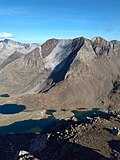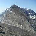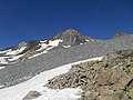 English: Vallibierna peak at sunrise as seen from Llauset reservoir