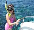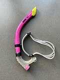 snorkeling swimming while breathing through a snorkel |