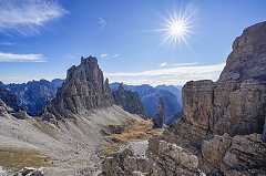 Skift billede | English : View on Val Montanaia (Montanaia Valley), with the Cima Both (2,437 m) on the left and the "Campanile" (2,173 m) in the middle; both are peaks of theSpalti di Toro group, in theFriulian Dolomites Natural Park,Friuli-Venezia Giulia,Italy. |