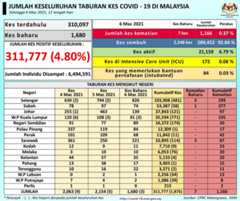 Ringkasan Status Terkini COVID-19 Di Malaysia, 06 Mac 2021