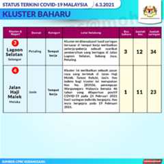Berikut adalah maklumat terkini berkaitan kluster-kluster di Malaysia sehingga 6 Mac 2021: