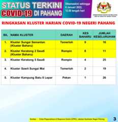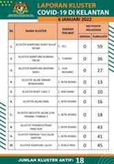 Tiada kluster baharu direkodkan hari ini.