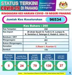 Kemaskini Negeri COVID-19 di Malaysia 06 JAN 2022
